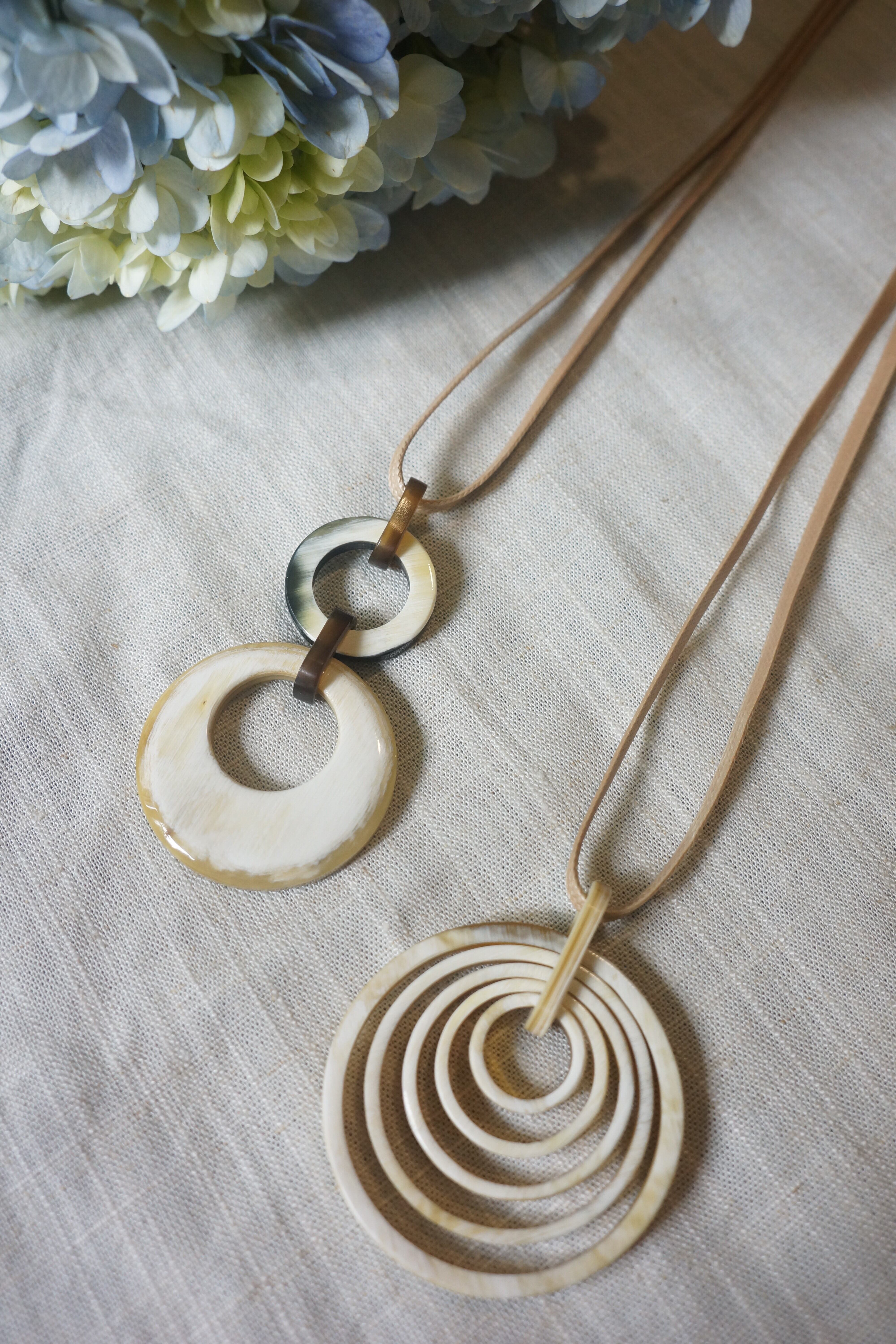 Each necklace showcases the unique patterns of natural buffalo horn, making every piece one of a kind.
