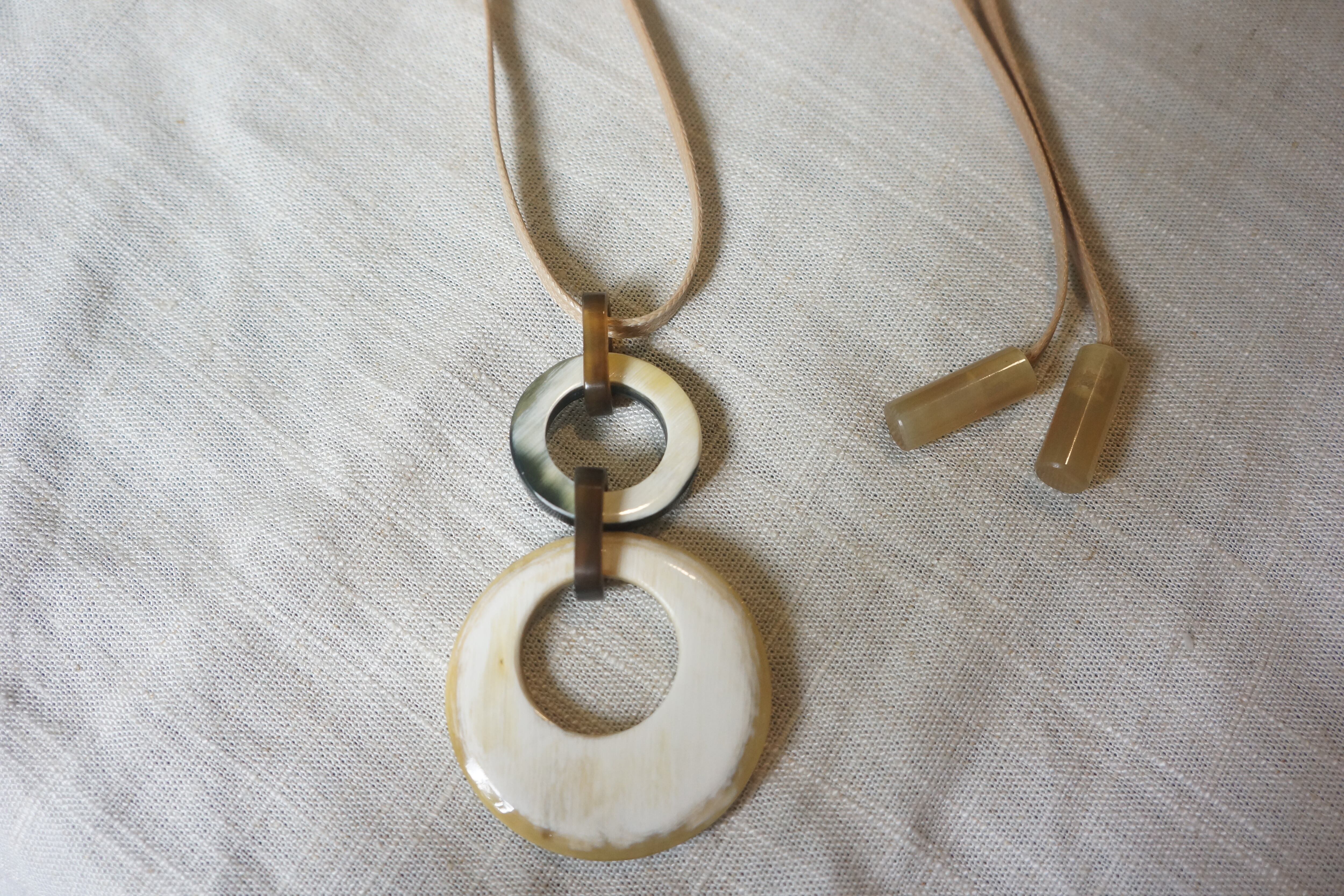 天然素材ならではの一点ごとに異なる模様が魅力の水牛角ネックレス。